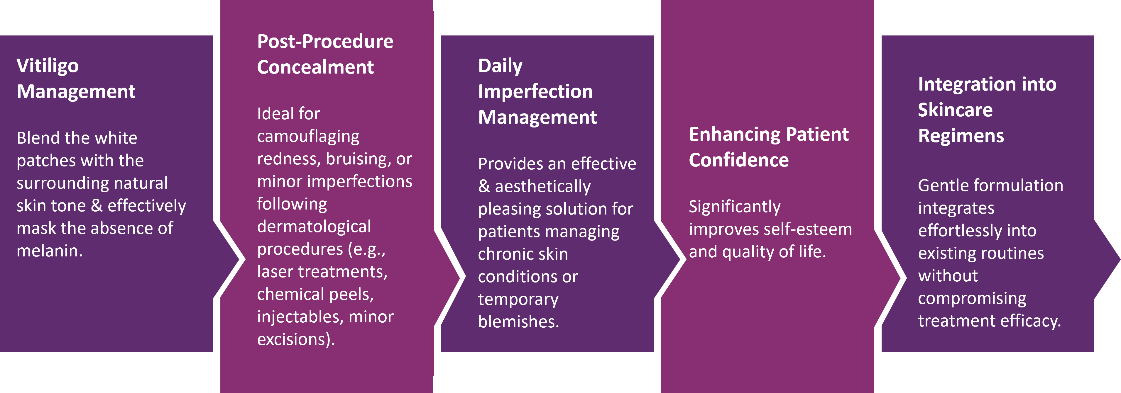 Premium cosmetic solution expertly formulated for clinically superior, natural-finish coverage of diverse skin imperfections including vitiligo, birthmarks, burns, scarring, psoriasis, rosacea, lupus, eczema, and pigmentation.